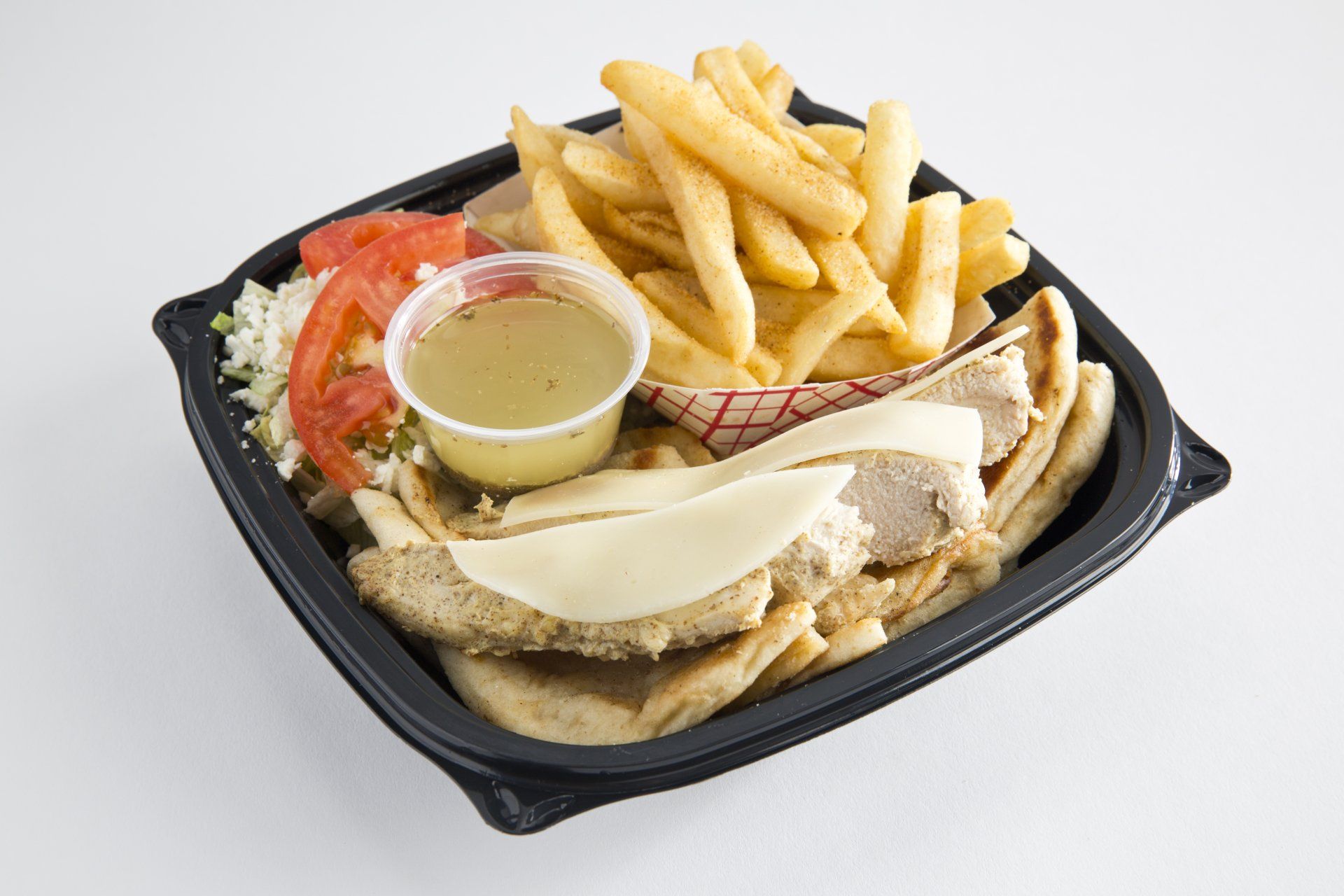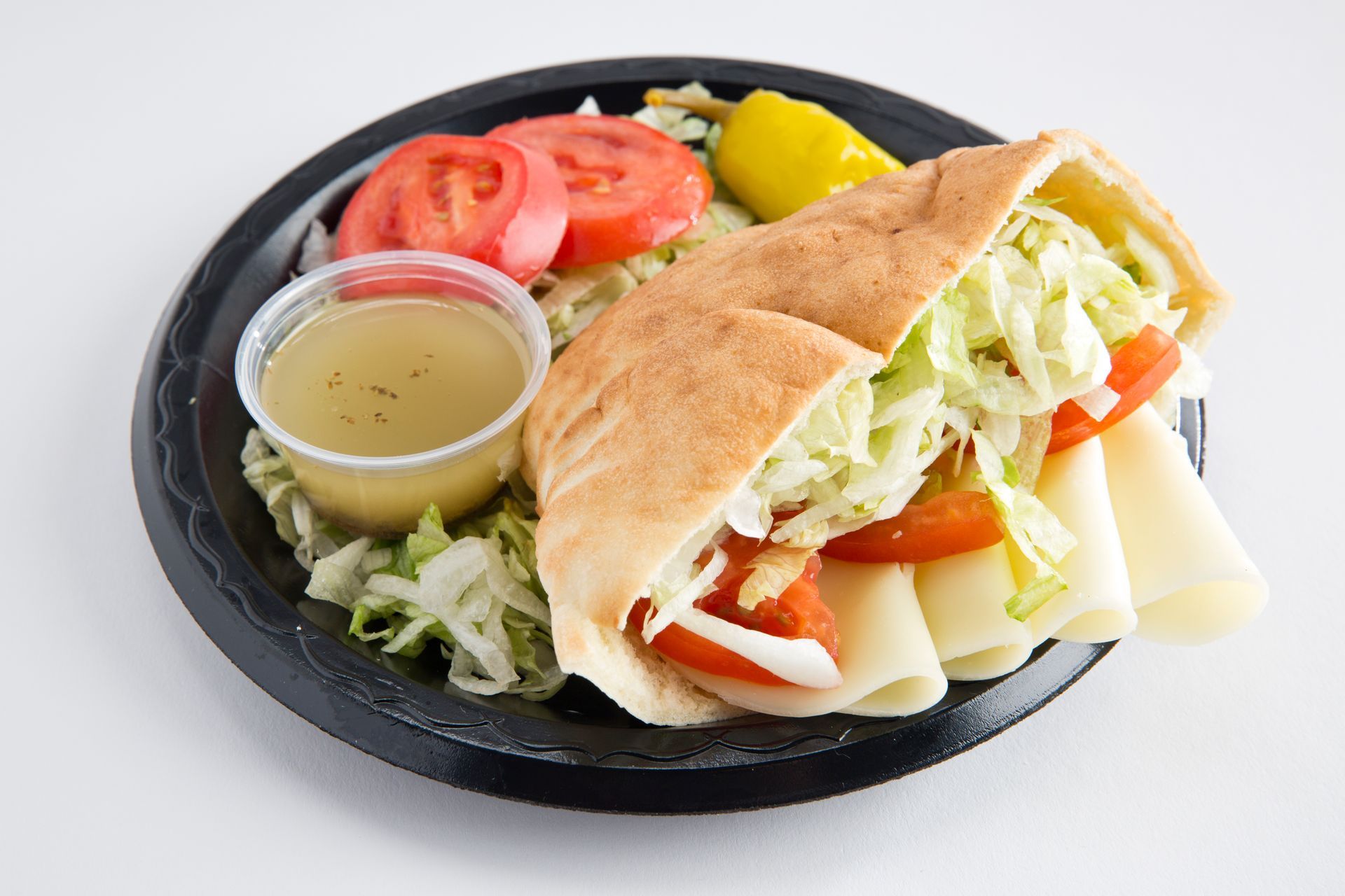 Melted provolone cheese served in a warm pita pocket and choose one side (Fries, Salad, Rice, Chips, Pretzel, Cookies or Pita)
