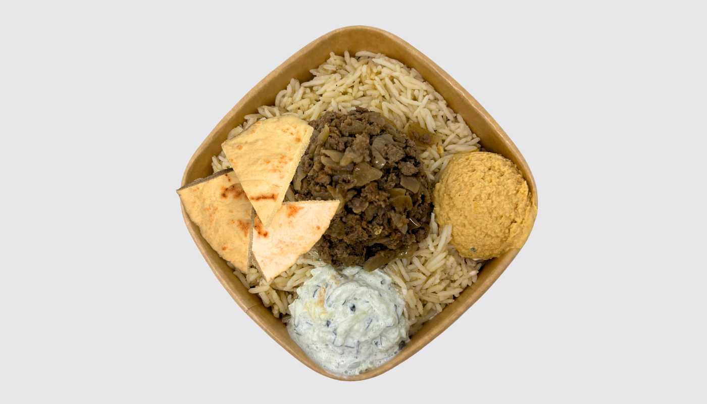 Grilled hamburger served in a warm pita pocket and choose one side (Fries, Salad, Rice, Chips, Pretzel, Cookies or Pita)